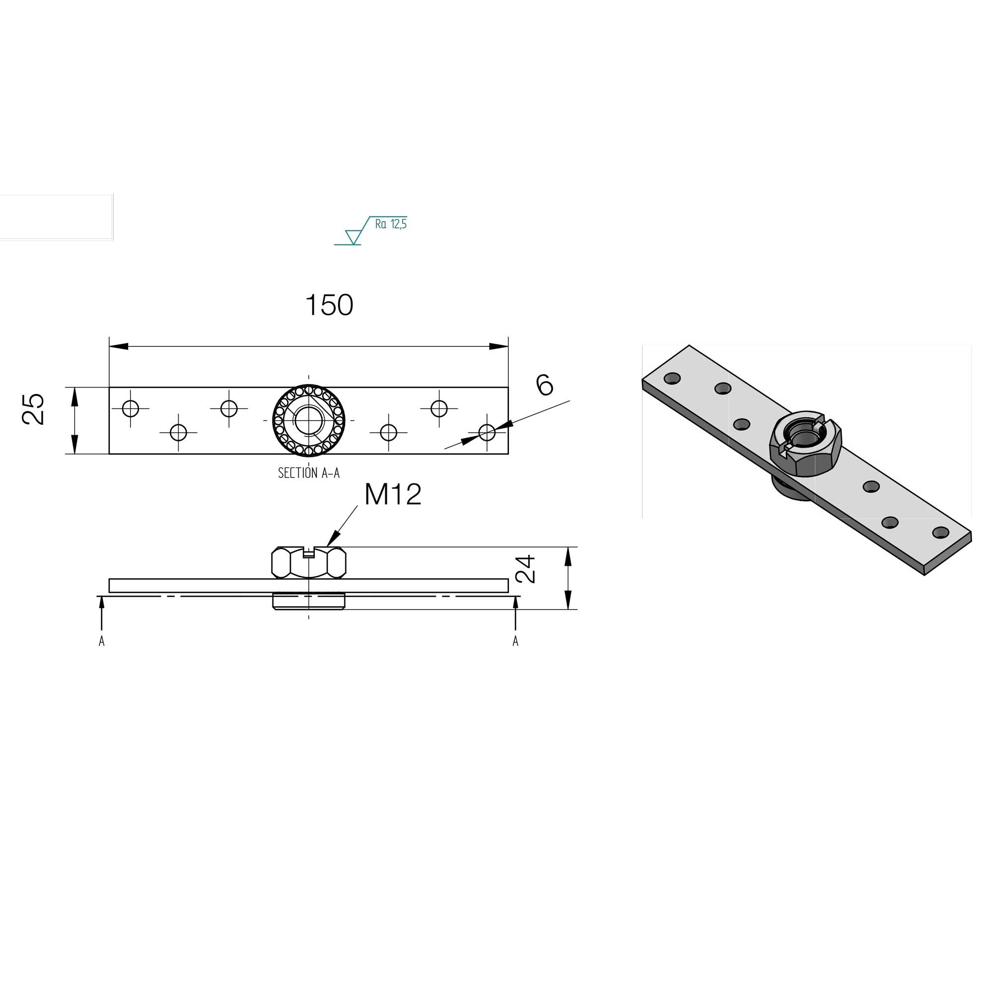 VODILNI VALJČEK NA PLOŠČI CR794, 25mm