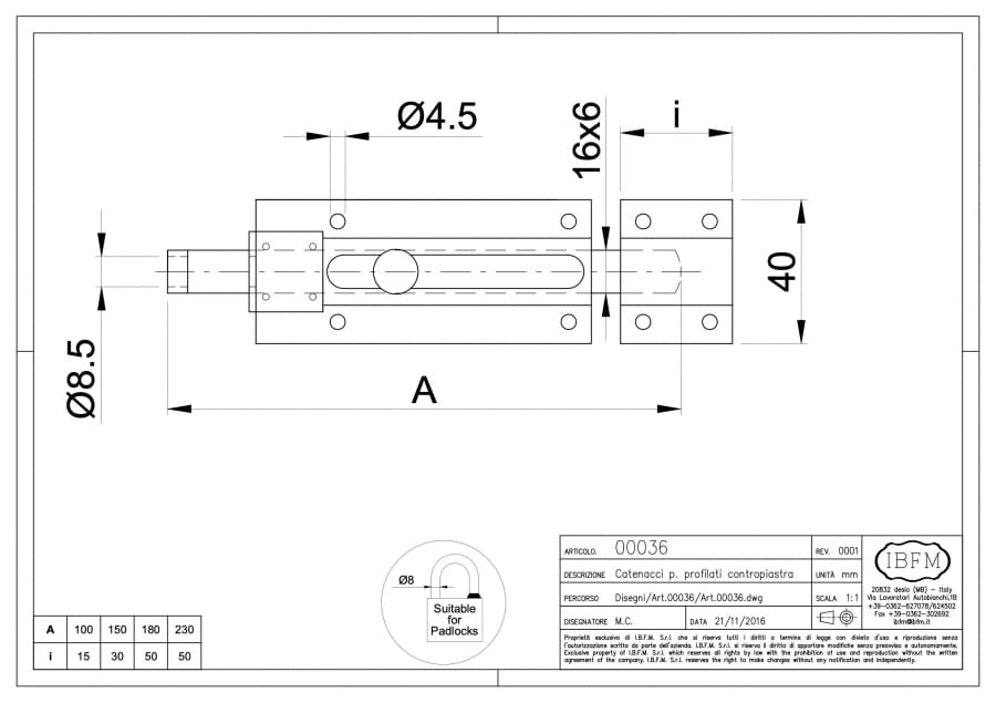 PREČNI ZAPAH ZA VRATA IM036/180 količina