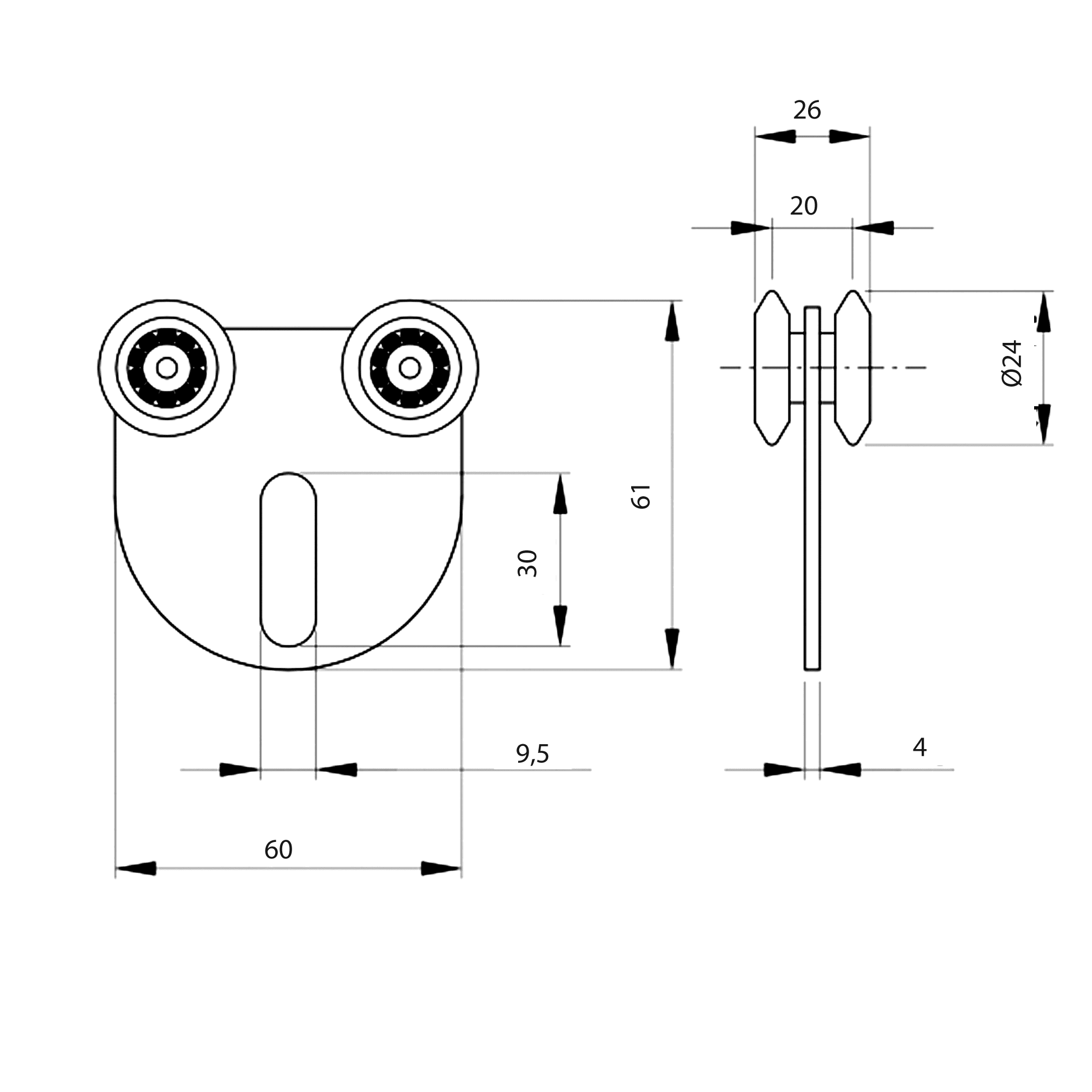 MONTAŽNA PLOŠČICA IM327, voziček 24mm