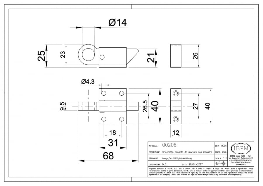 PREČNI ZAPAH ZA VRATA IM026A/100