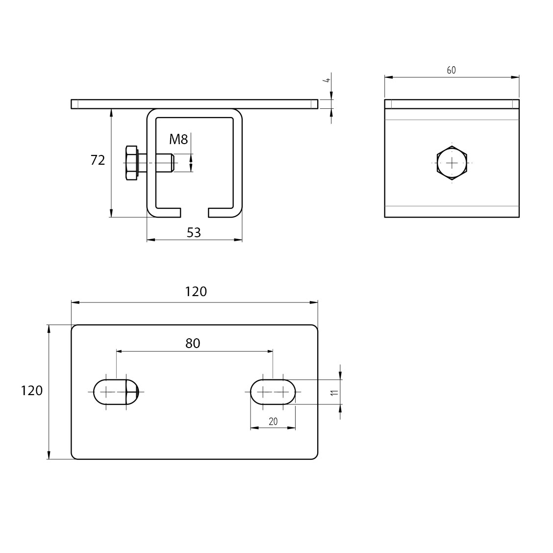 MONTAŽNA PLOŠČICA NASTAVLJIVA KOAL 6, voziček 24mm